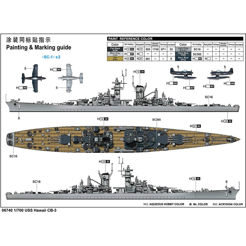 Maquette plastique de bateau USS Hawaii CB-3 1:700