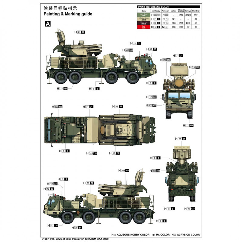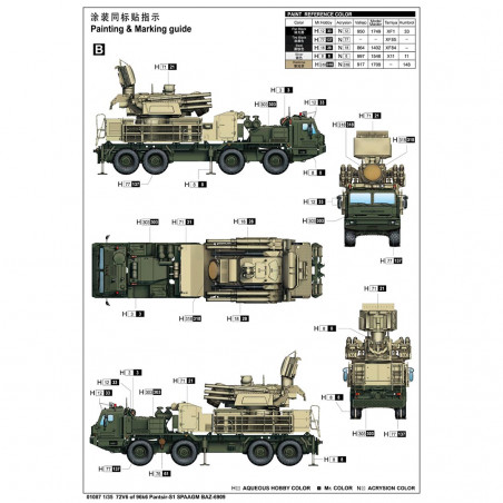 Plus de details En stock, disponible immédiatementMaquette plastique de camion Russe 72V6 of 96k6 Pantsir-S1 SPAAGM BAZ-6909 1:35