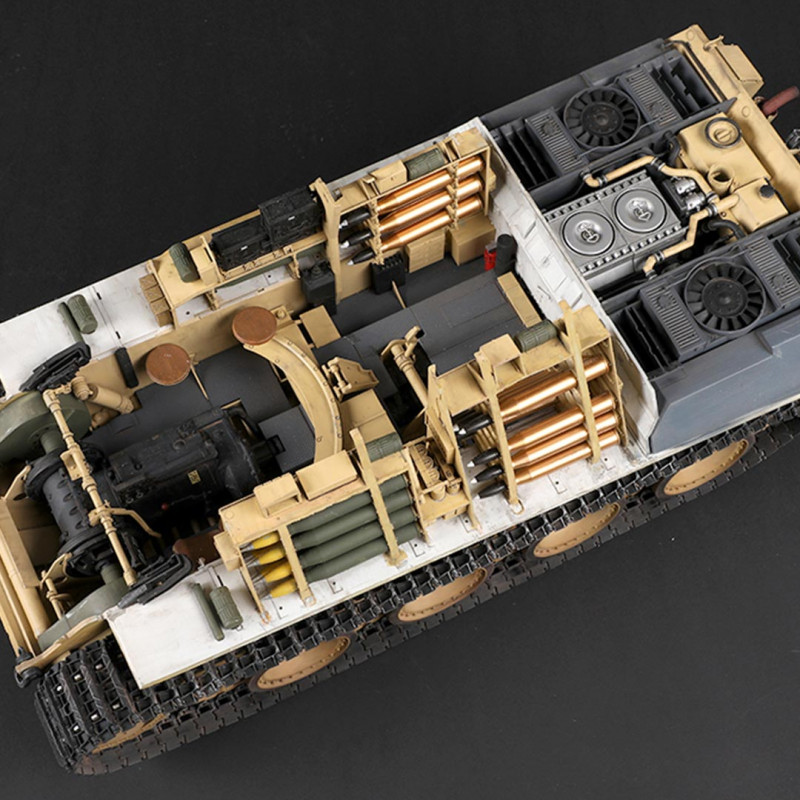 L’intérieur de ce char est entièrement détaillé et possibilité de laisser des partie internes apparentes grâce aux pièces transparentes incluses.