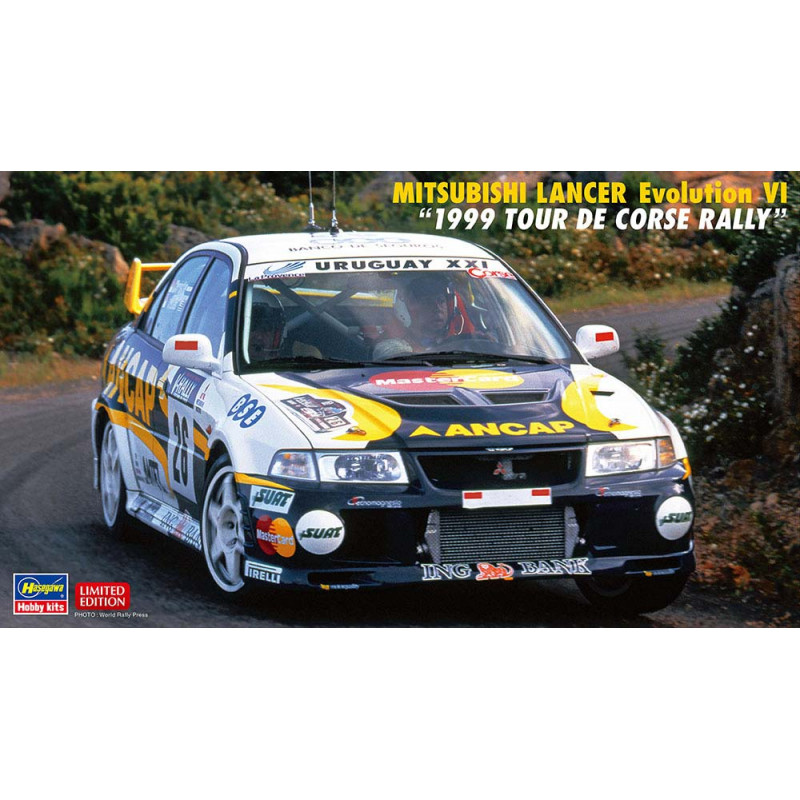 Maquette plastique de voiture Mitsubishi Lancer Evo VI « Rallye Tour de Corse 1999 » 1:24