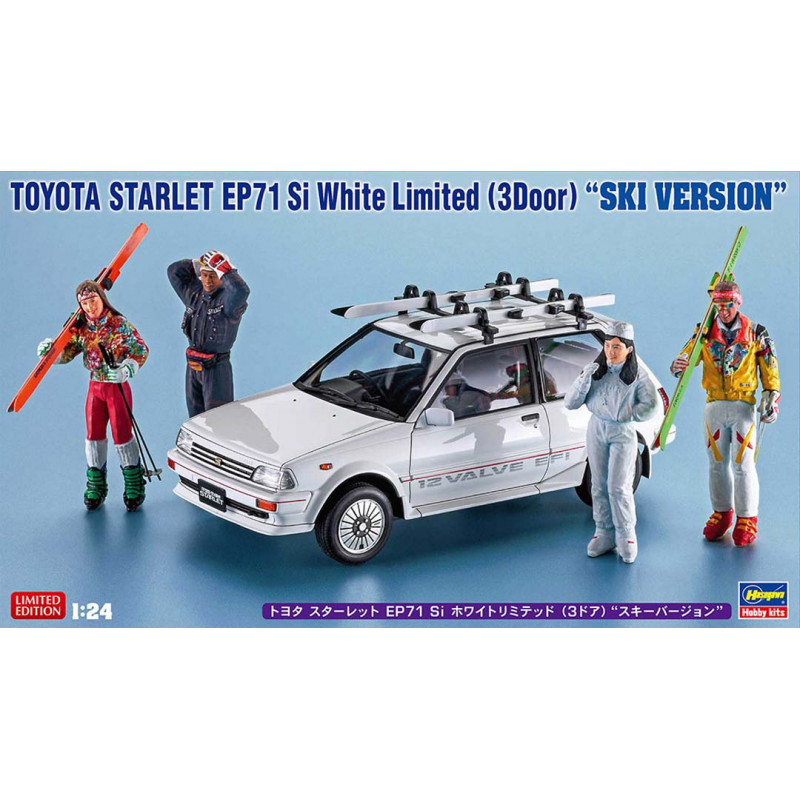 Maquette plastique de voiture Toyota Starlet EP71 Si Limited (3 portes) « Version Ski » 1:24