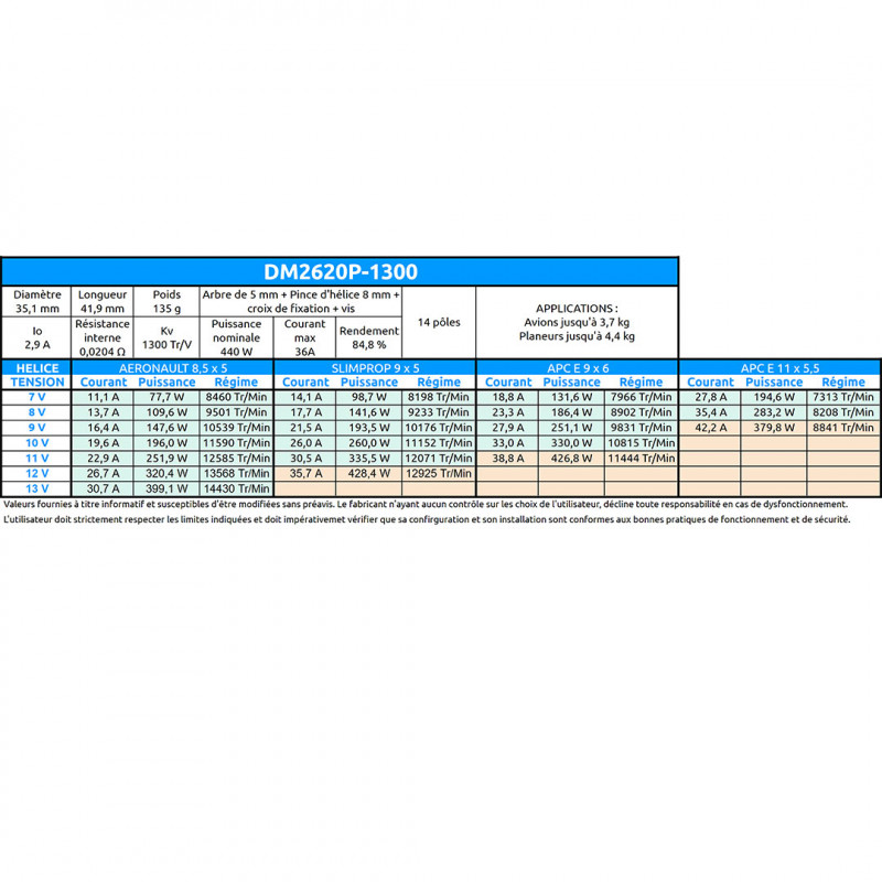 Plus de details En stock, disponible immédiatementMoteur électrique radiocommandé Moteur Power DM2620P Kv1300