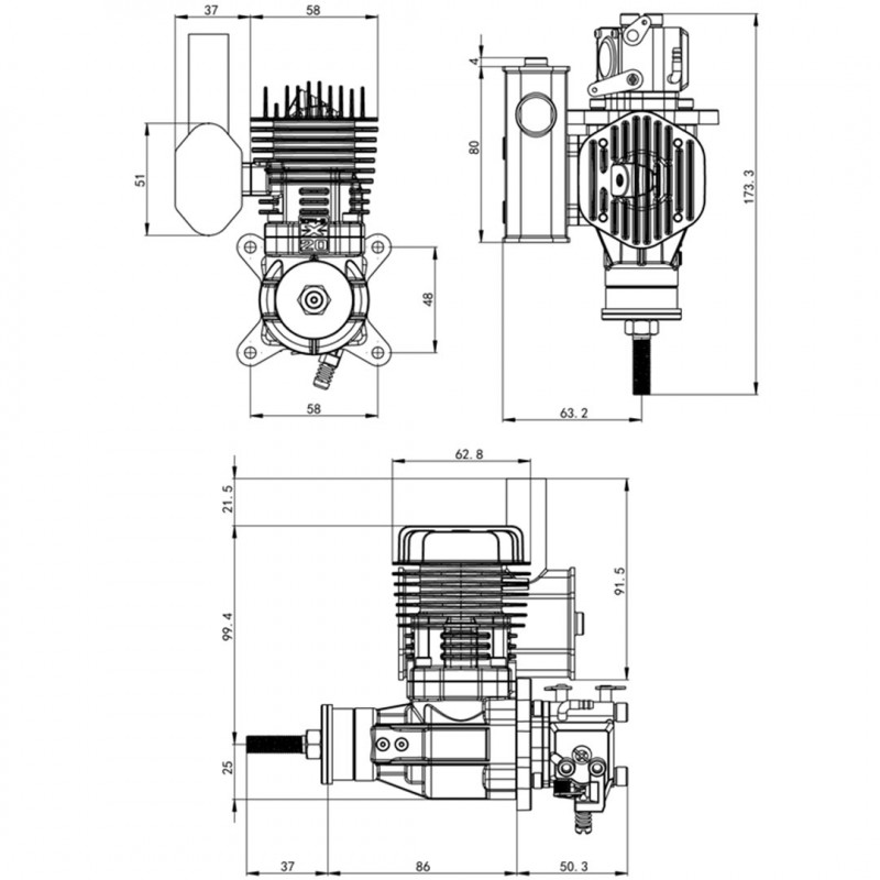 - Un moteur X-20cc-S à sortie latérale avec son carburateur Walbro