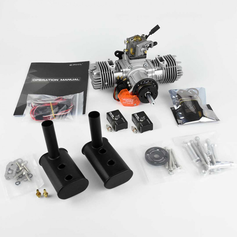 Plus de details En stock, disponible immédiatementMoteur Thermique Essence pour avion EPHIL 40cc bi-cylindre PRO avec démarreur