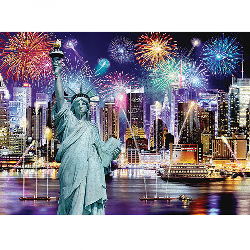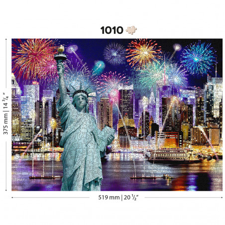 Ce puzzle 1000 pièces vous invite à contempler la skyline de New York illuminée, dominée par la célèbre Statue de la Liberté tenant son flambeau face à un feu d’artifice éclatant. Chaque détail rend hommage à la grandeur et à l’énergie de Manhattan, entre modernité et histoire.
