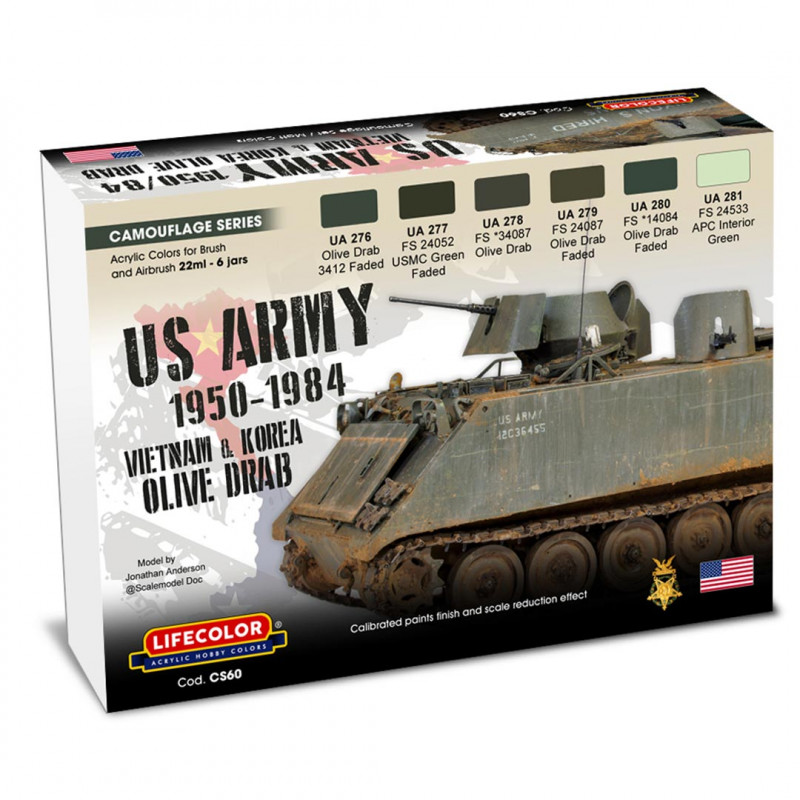 Plus de details En stock, disponible immédiatementPeinture acrylique Set Vert Olive de l’armée américaine de 1950 à 1984
