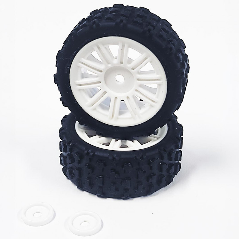 Plus de details En stock, disponible immédiatementPièce pour voiture électrique paire de pneus medium sur jantes rallye pour Stinger Piste 1:14