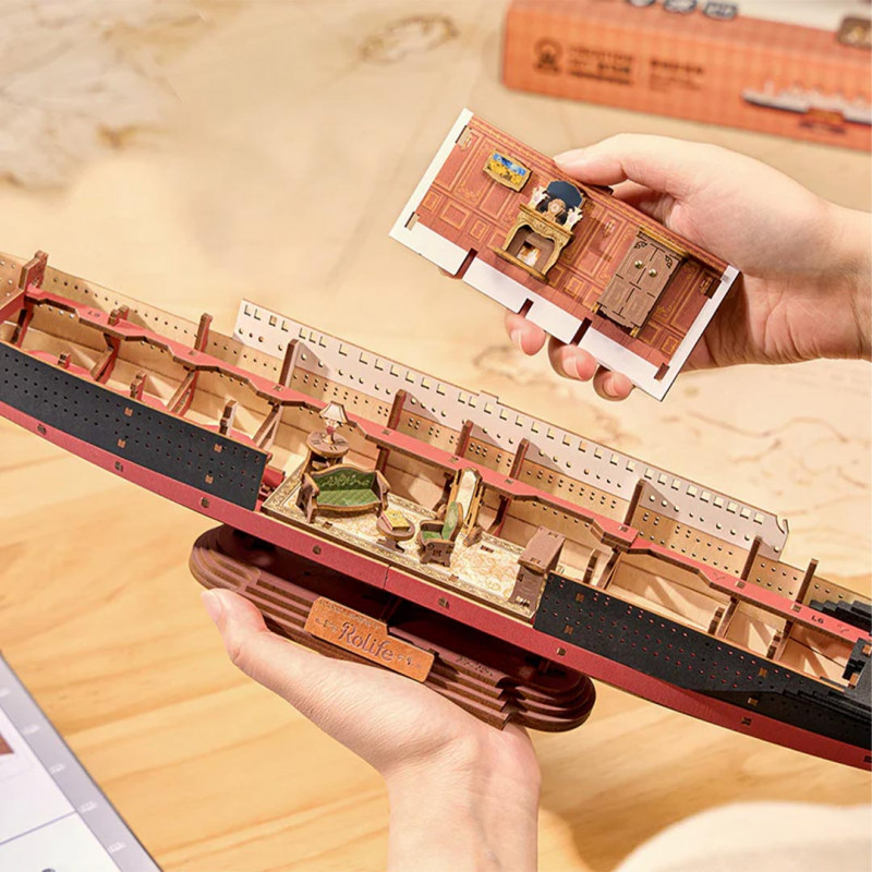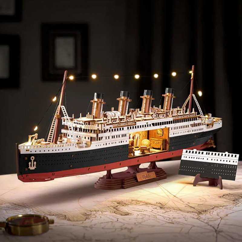 L'Eternal Atlantic Voyager de 1912 de Rolife rend hommage aux plus grands paquebots de l'époque. Ce modèle réduit capture la beauté et la grandeur de ces navires en miniature. Son assemblage peut paraître complexe, mais avec seulement 6 heures de montage et un niveau de difficulté de 4 étoiles, les constructeurs apprécieront la finesse des détails sans que le processus ne soit trop compliqué. Vous serez conquis par la précision des détails
