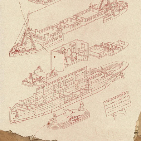 Le panneau recouvrant la suite peut être exposé sur le support fourni. La plaque de base comporte des informations sur l'itinéraire du navire.