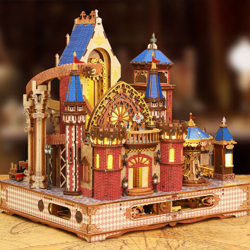 · Vos réalisations seront mises en valeur la nuit grâce aux éclairages inclus ! (2 piles AAA non fournies) et également grâce à la boite à musique incluse.