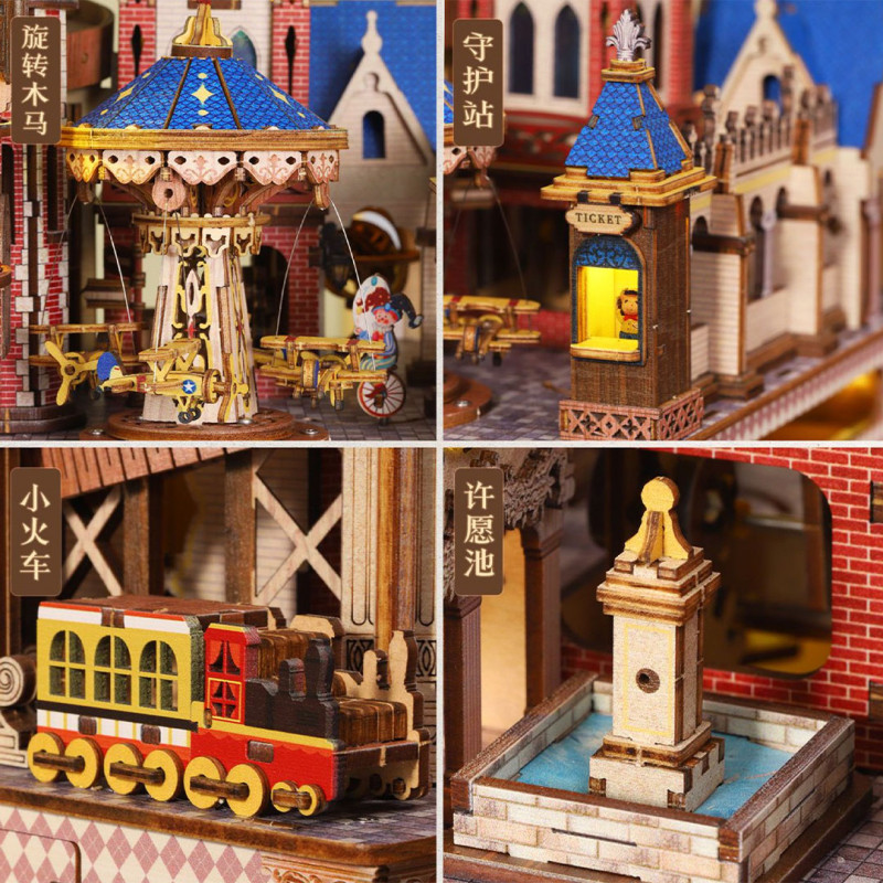 Alliant loisirs créatifs et maquettisme, cette collection de maisons miniatures à monter soi-même inclut des kiosques, des boutiques et des pièces de maison détaillées.