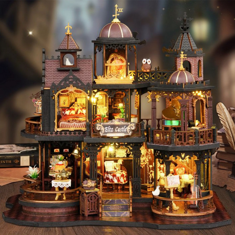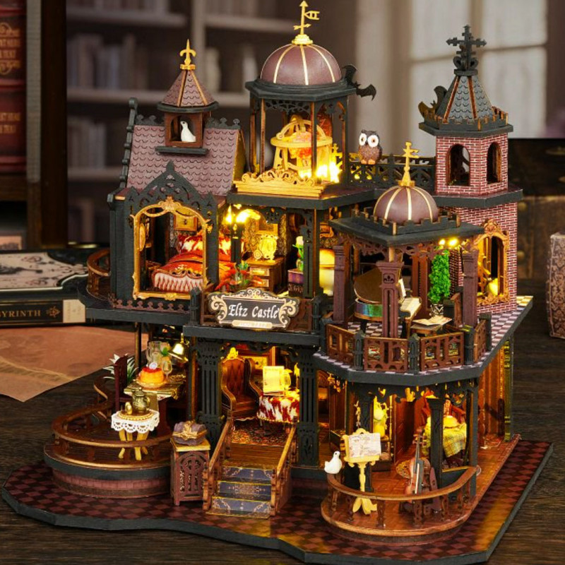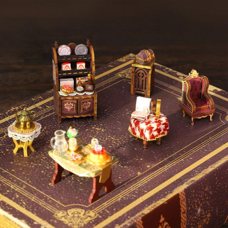 Alliant loisirs créatifs et maquettisme, cette collection de maisons miniatures à monter soi-même inclut des kiosques, des boutiques et des pièces de maison détaillées.