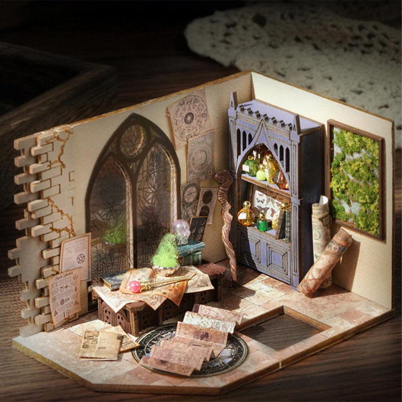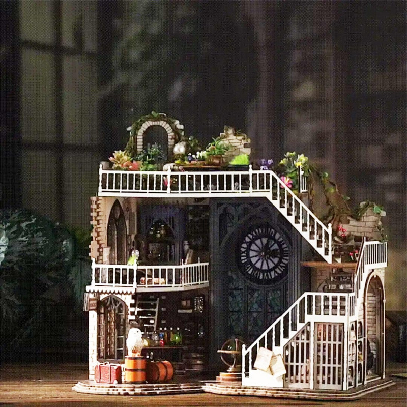 Alliant loisirs créatifs et maquettisme, cette collection de maisons miniatures à monter soi-même inclut des kiosques, des boutiques et des pièces de maison détaillées.