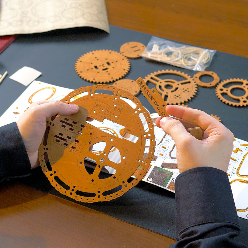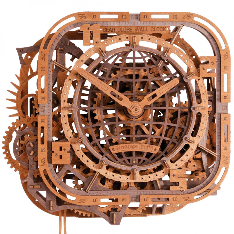 Puzzle 3D mécanique intermédiaire Horloge Murale Globe à engrenages