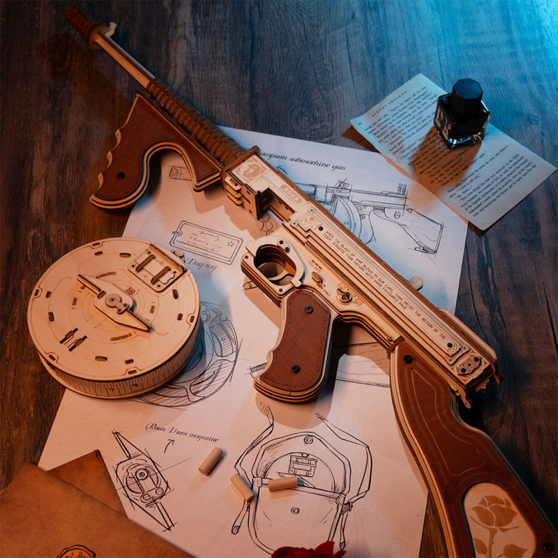 Puzzle 3D mécanique intermédiaire pur maquette la mitraillette Thompson