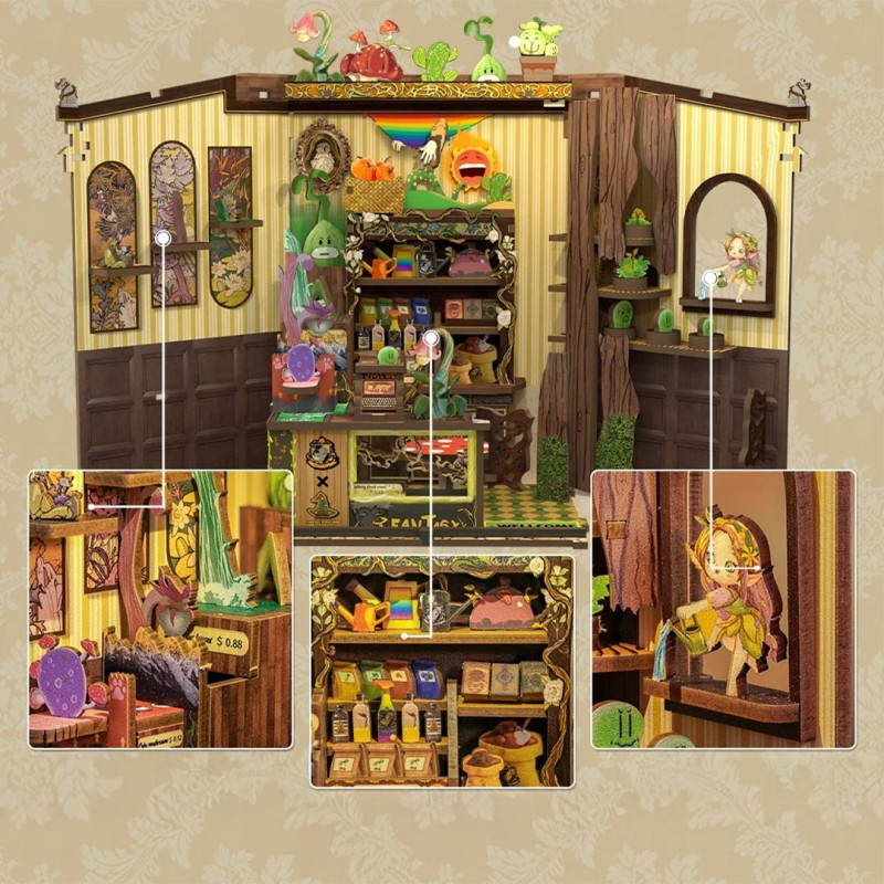 Fantasy Plant Shop, Serre Livres (Book Nook) principalement en bois à assembler soi même (Do It Yourself).