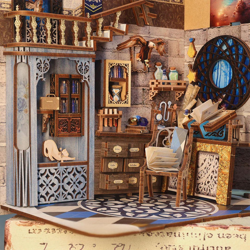 Les bois à l’extérieur de la fenêtre, les lumières étoilées magiques, les livres éparpillés sur la table et la bouteille de potion enchantée... cet endroit est le studio de magie rêvé par chacun.