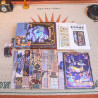 La couverture est un design original en planche illustrée. Le côté gauche intègre un livre de magie, des éléments mystiques et des animaux dans une composition harmonieuse, tandis que le côté droit regroupe les objets et symboles présents dans le décor. Ces deux parties se répondent mutuellement, unifiant le thème et illustrant avec éclat l’univers magique et céleste.
