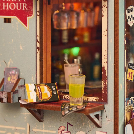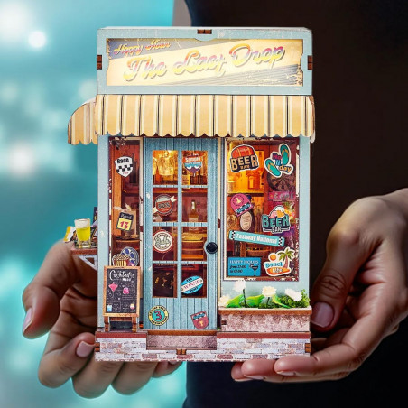 THE LAST DROP Serre Livres (Mini Book Nook) principalement en bois à assembler soi même (Do It Yourself), par emboitement et collage.