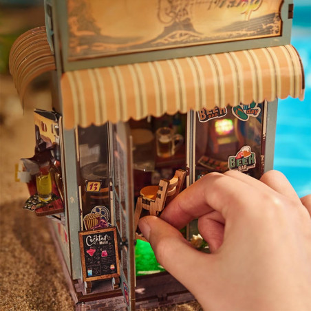 Ambiance bar de plage , rempli de nombreux objets, avec effets lumineux.