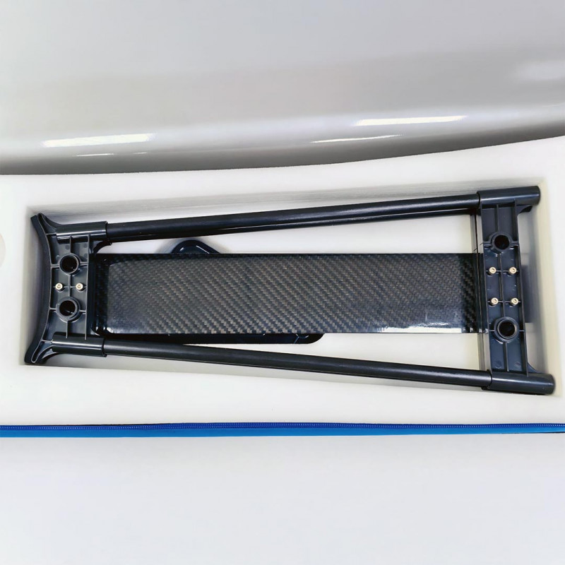Contrairement au V1 qui permettait de ranger le bateau avec quille et bulbe installés, la version V2 offre un système de rangement séparé et sécurisé pour ces éléments.