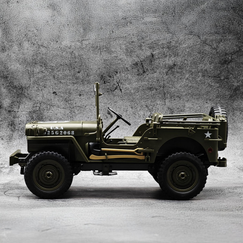 Jeep radiocommandée traitée façon maquette : une reproduction ultra-réaliste de la JEEP Willys.