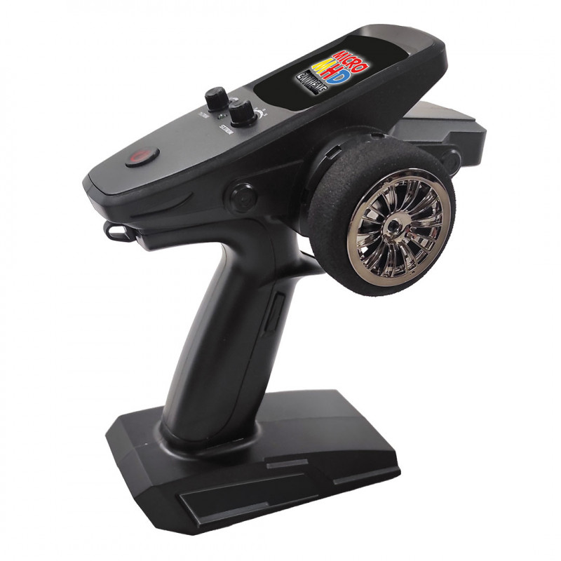 La radiocommande fonctionnant sur la bande de fréquence 2,4 GHz permet une portée comparable à celle des modèles plus grands, à l'échelle 1/10.