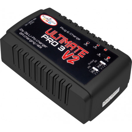La batterie livrée d’origine avec ce MOAB Brushless est une batterie LiPo de 7,4 Volts de 3000 mAh avec sa coque de protection et le chargeur un Ultimate PRO 3 (Z032069).