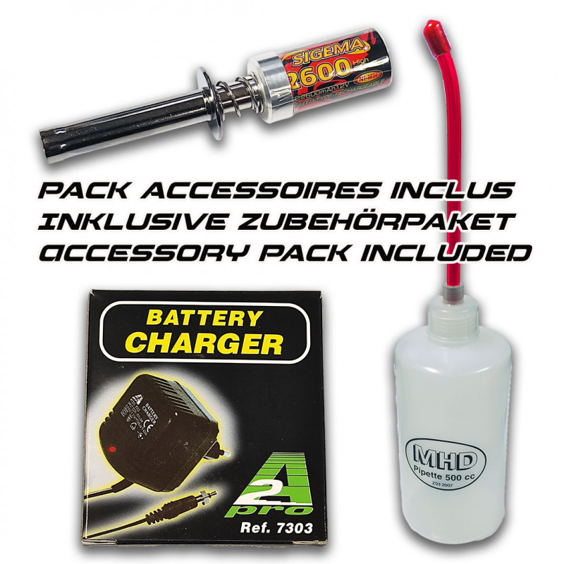 Les voitures MHDPRO avec moteur thermique ci-dessus sont les tous derniers châssis 1/10 pour le Loisir de MHD. Livrés 100% montés avec nouvelle radiocommande MHD3S installée, carrosserie peinte et décorée, 4 roues motrices, transmission par cardans CVD à l'avant, équipés des dernières innovations technologiques telles que la radiocommande en 2,4 GHz qui évitent les interférences radios, munies d'un puissant moteur .18 de marque FORCE Engines avec tirette, résonateur et carburateur à tiroir, d'une cloche d'embrayage 3 points, d'amortisseurs à gros volume réglables avec multiples points d'ancrage, de pièces en aluminium de grande qualité, de différentiels à pignons d'un design unique et d'une boite de protection de la radiocommande pour abaisser au maximum le centre de gravité de la voiture, d'un réservoir grande capacité, d'une géométrie ajustable. Barres anti roulis avant et arrière en option. Ils sont livrés avec une pipette pour remplir le réservoir de carburant, un socquet d'alimentation de la bougie pour le démarrage du moteur et son chargeur de secteur. Non inclus à acquérir séparément l’accu de réception. Nombreuses options disponibles, voir Pièces Optionnelles. Truggy et Monster : Longueur 415 mm, largeur 328 mm, hauteur 156 mm, empattement 290/295 mm, Pneus 120 x 60 mm, ratio de transmission 10.4:1. Caractéristiques de la nouvelle radiocommande MHD3S : 3 voies, pour voiture ou bateau, inversion du sens de rotation des servos, Dual Rate, fonction Fail Safe sur 2 voies, petite antenne performante, batterie LiPo incluse 3,7 volts 800 mA, câble de charge USB inclus, système de modulation AFHDS de dernière technologie 2,4 GHz. Plaisir, facilité et performances sont au rendez vous avec les voitures FLASH MHDPRO 1/10. Depuis le mois de Septembre 2016, les voitures FLASH 1/10 thermiques sont équipées d’un tout nouveau FORCE .18. Si votre voiture en est équipée et que vous souhaitez commander des pièces détachées, merci de vous reporter au moteur référence Z60FFORCE18 et à ses pièces détachées.